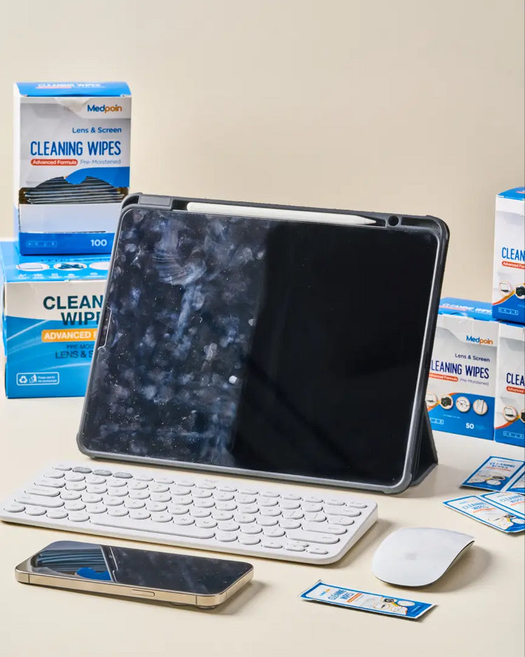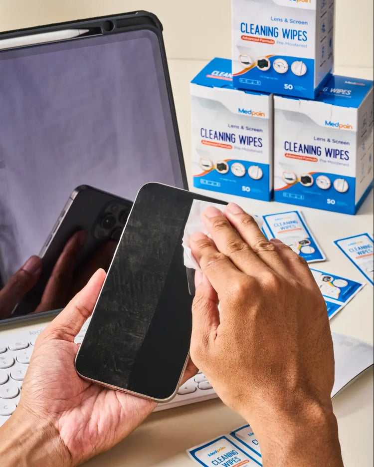 Medpoin Screen Cleaning Wipes gently remove dirt, dust, and germs from a variety of electronic device screens, such as smart phones, cell phones, laptops, tablets, computer monitors, and TVs.